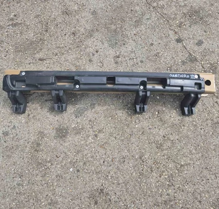 Ez egy autó lökhárító mögé szerelt fém merevítő elem, amit ütközés esetén arra terveztek, hogy elnyelje és szétossza az erőhatásokat, így védve a karosszéria többi részét. A formája enyhén ívelt, hogy illeszkedjen az autó elejének vagy hátuljának vonalához, a rajta lévő furatok és rögzítési pontok pedig azt szolgálják, hogy a vázhoz lehessen csavarozni. Általában nem látszik kívülről, mert a műanyag lökhárító burkolat mögött helyezkedik el, és fontos szerepe van abban, hogy egy kisebb koccanásnál ne sérüljön komolyabban az autó.
