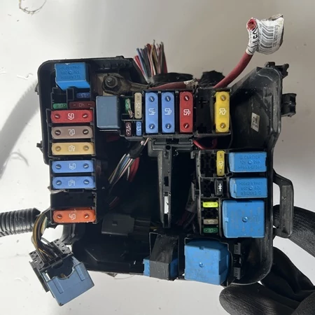 A biztosítéktábla relékkel szerelve a jármű elektromos hálózatának központi elosztó- és védelmi egysége. Feladata, hogy a különböző rendszerek – például a motorvezérlés, hűtőventilátor, világítás, fűtés és klíma – áramellátását biztonságosan és hatékonyan kezelje. Az egységben található biztosítékok és relék megvédik az elektromos áramköröket a túláramtól és a rövidzárlattól, ezzel hozzájárulva a jármű megbízható működéséhez. A tartós, időjárás- és rezgésálló ház hosszú élettartamot biztosít, míg a gyári csatlakozók pontos illeszkedést és egyszerű beszerelést tesznek lehetővé.
